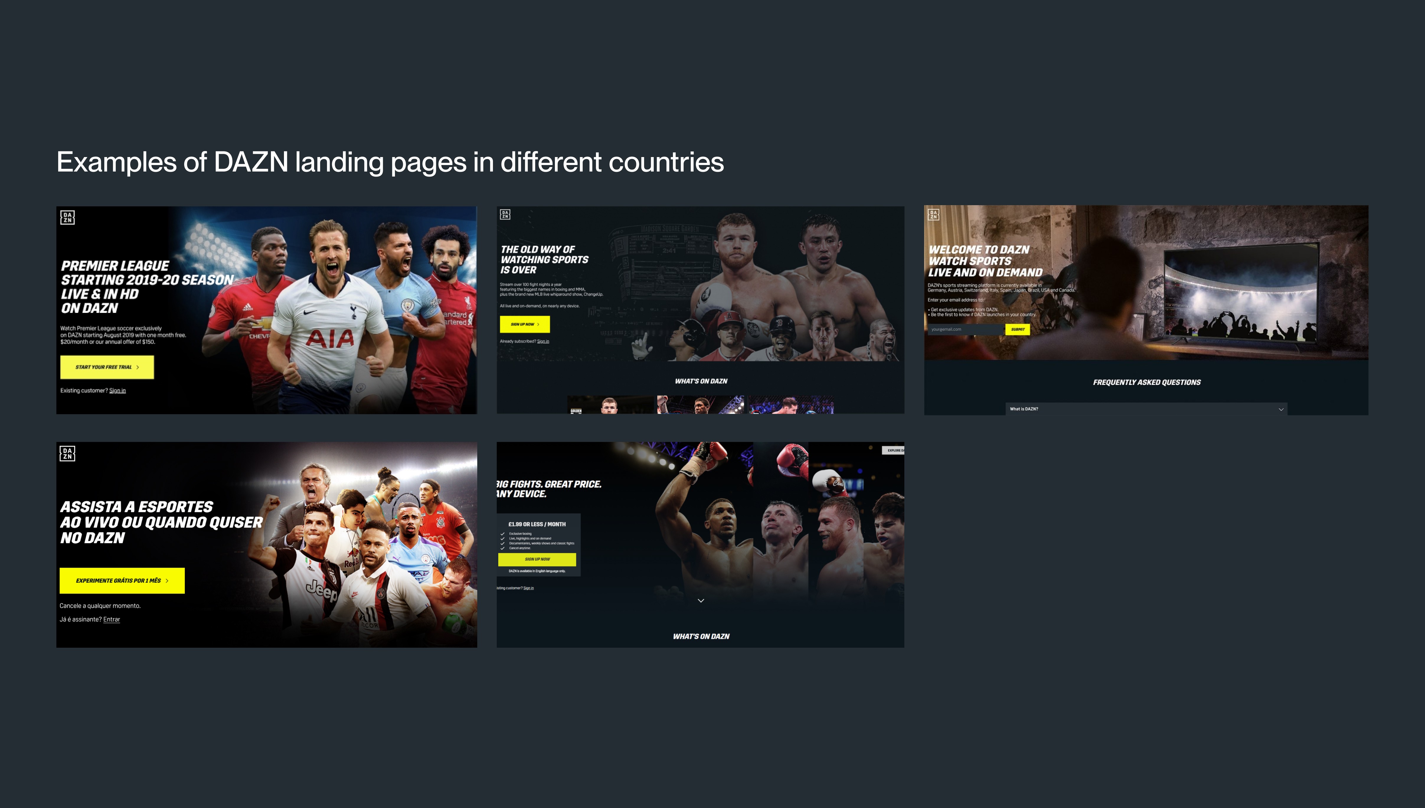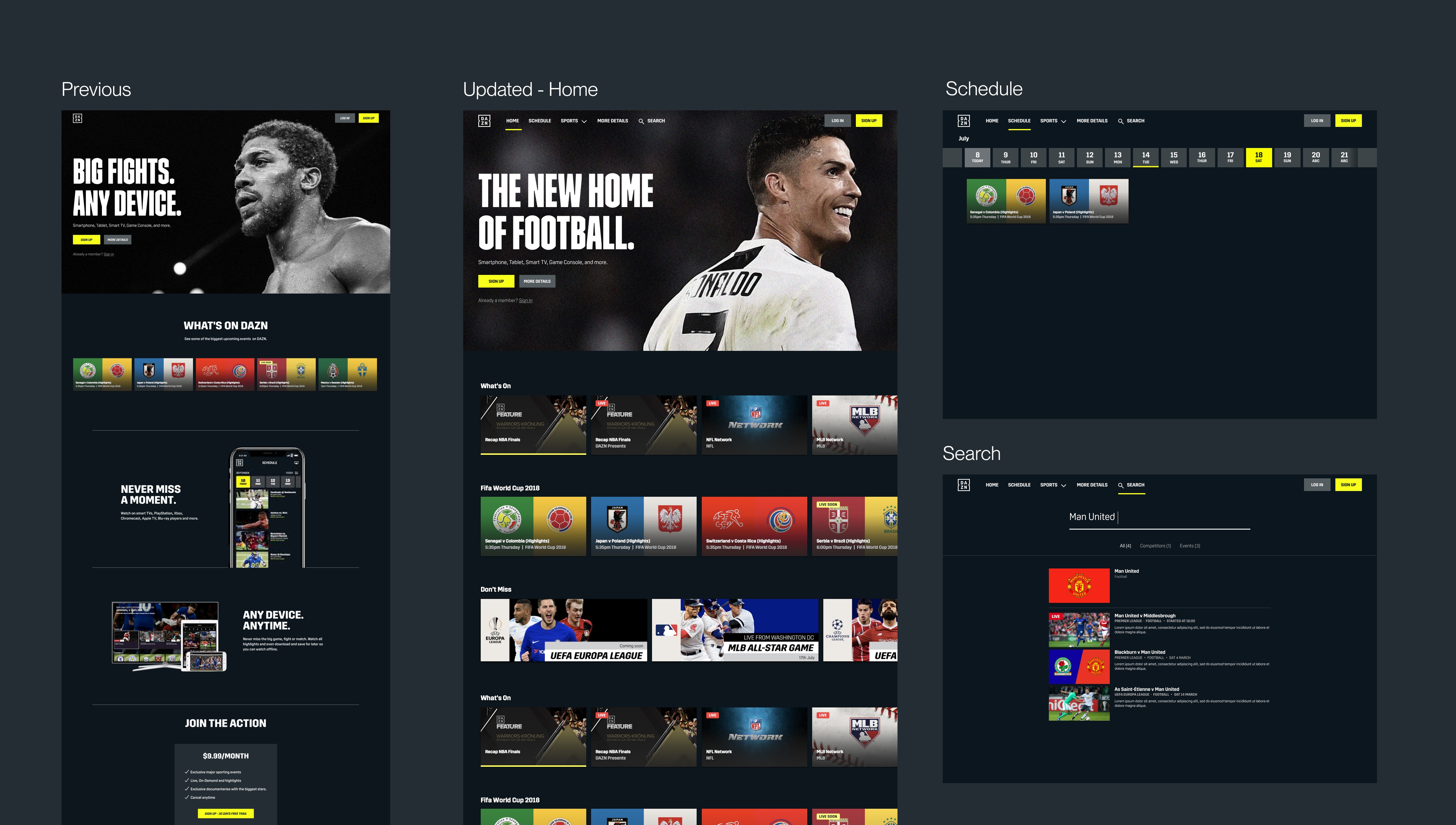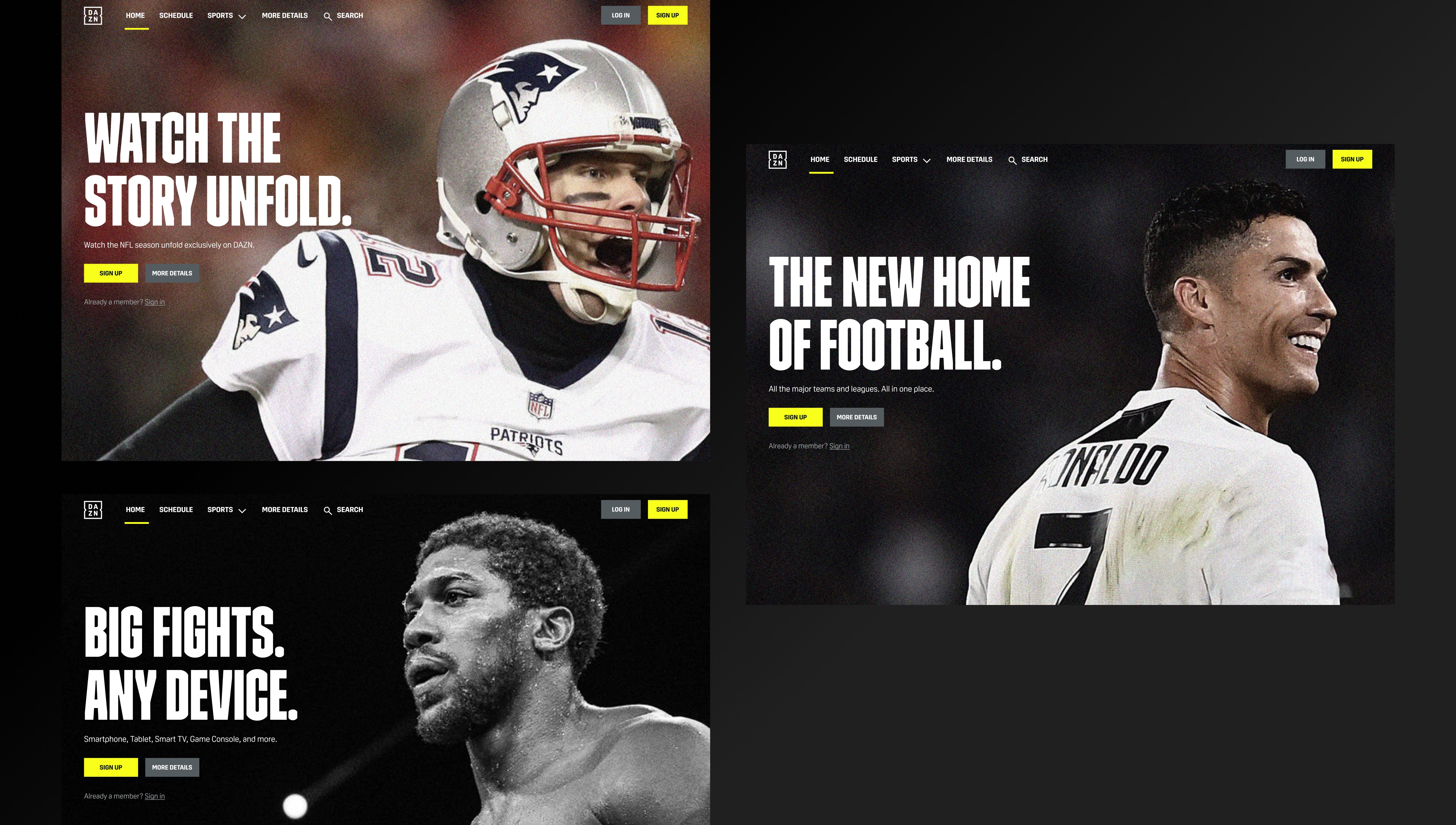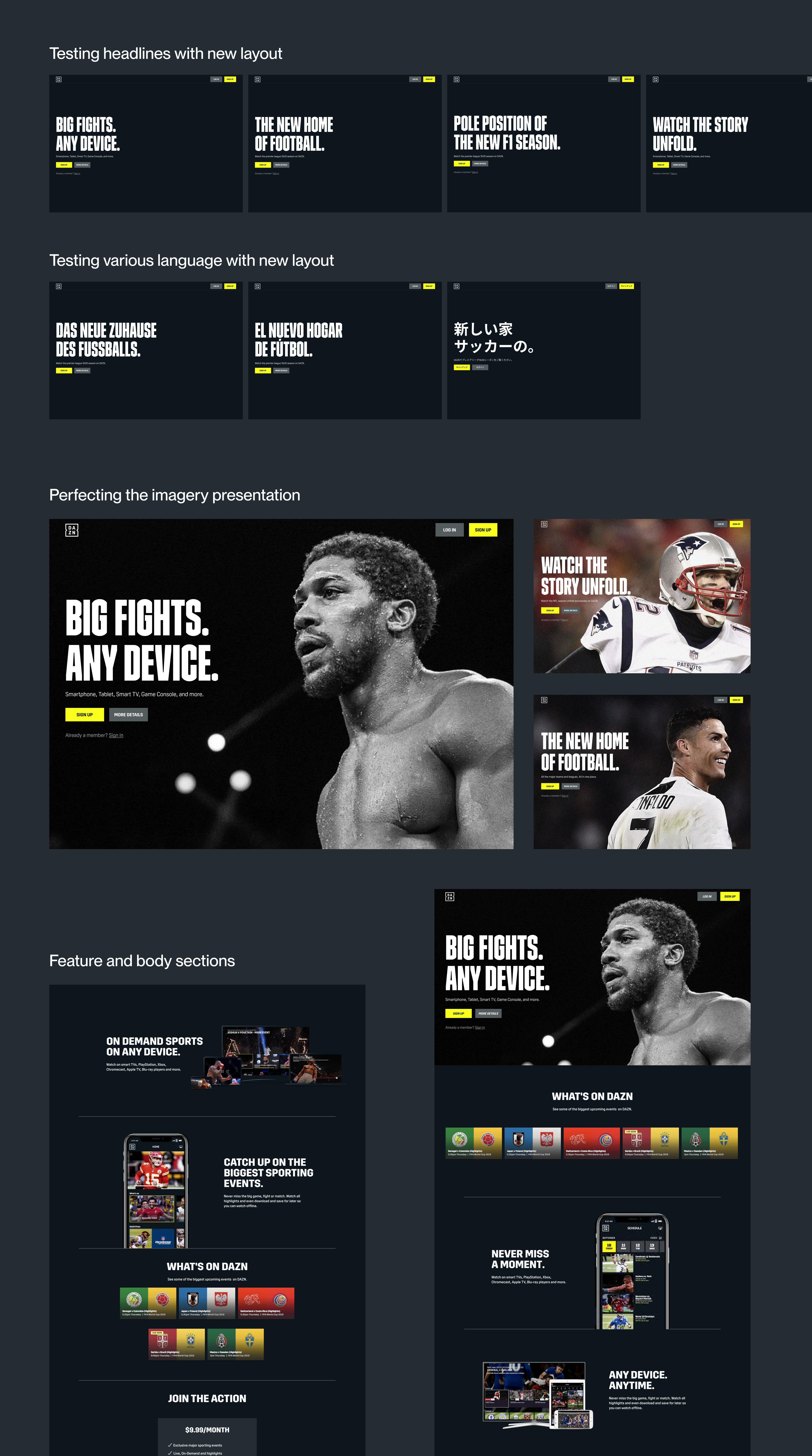 I set out to create alignment that would establish a point of view around how to give the DAZN brand a proper home, for our first impressions. The result became a narrative tool to overhaul our landing pages, for users being able to engage with our product before even signing up.