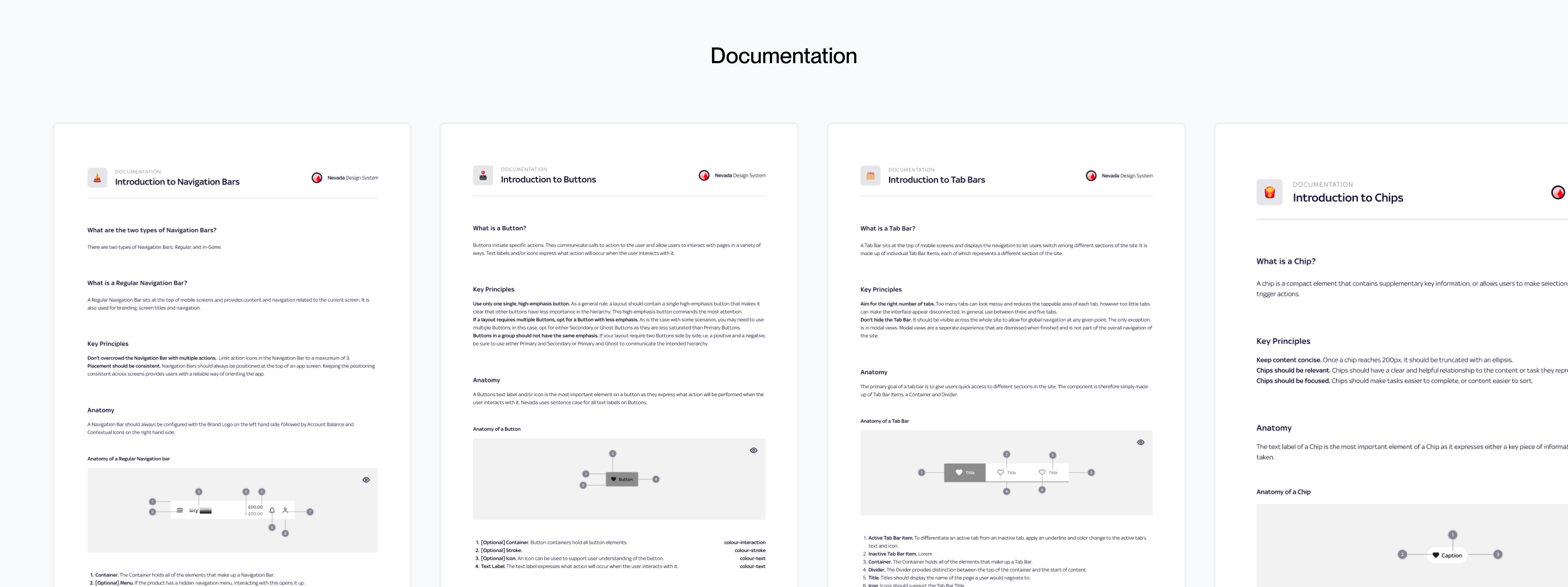 For clarity and guidance on components use case and structure, we provided robust documentation. During this process it also helped the Nevada team refine the naming conventions, organisation and influenced some design changes.